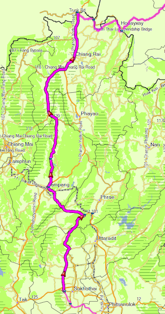 We went through trunk road and have some offroad action just outside Sukhothai.