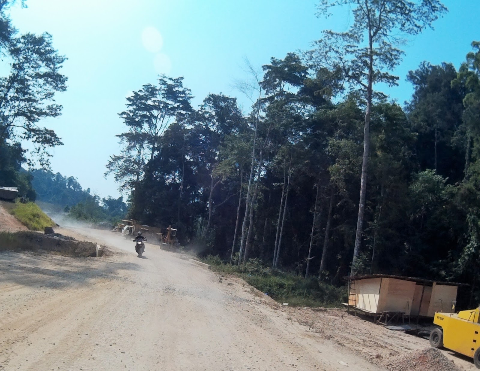 junction on the road construction to Pos Senderut and we reduce our tyre